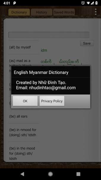 The English Myanmar Dictionary is a free offline dictionary app for Android devices. It contains over 700,000 words and is updated with new words on a regular basis.